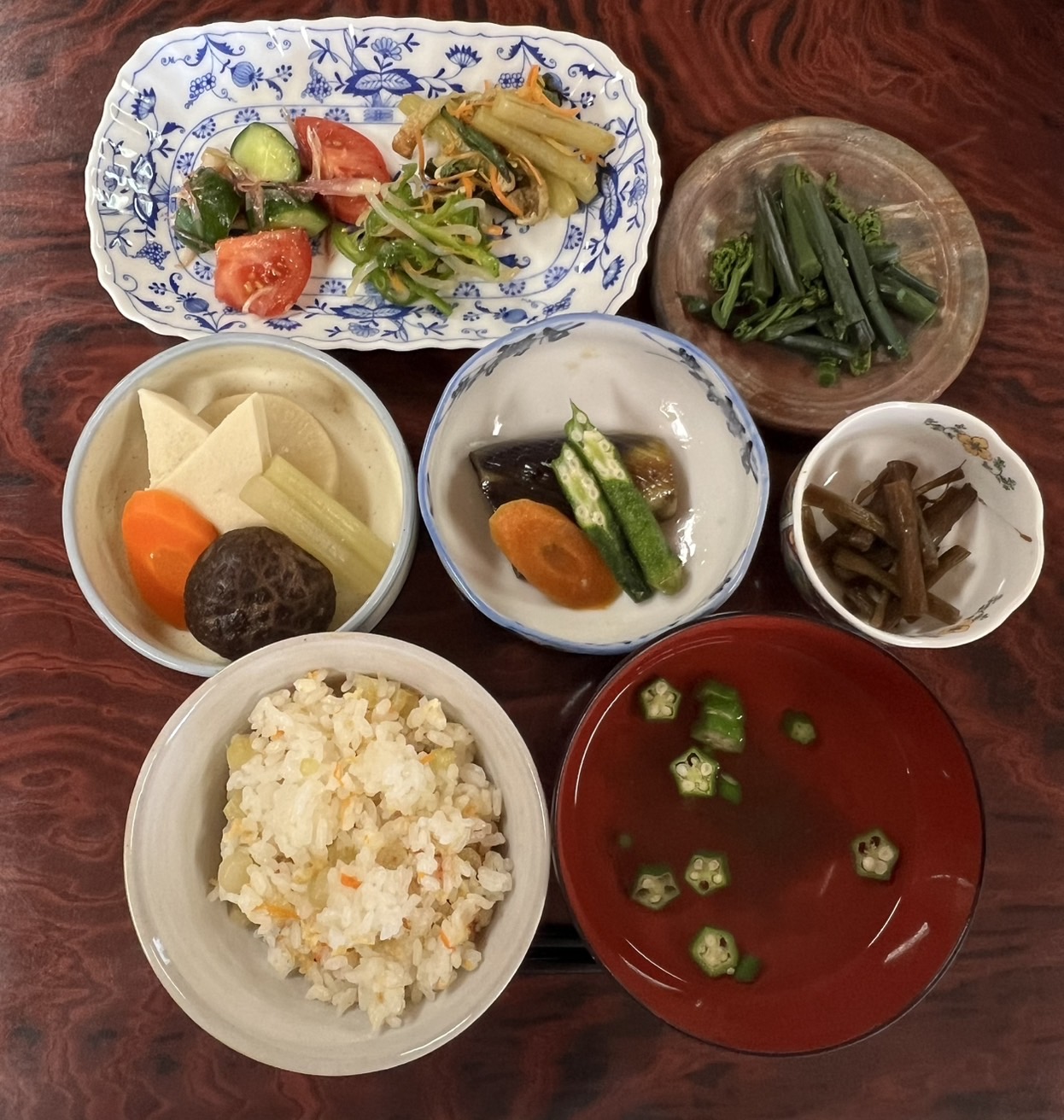 一つ一つ丁寧に、別々に味を含ませた高野豆腐やお野菜を、一つのお皿に盛り込んで、