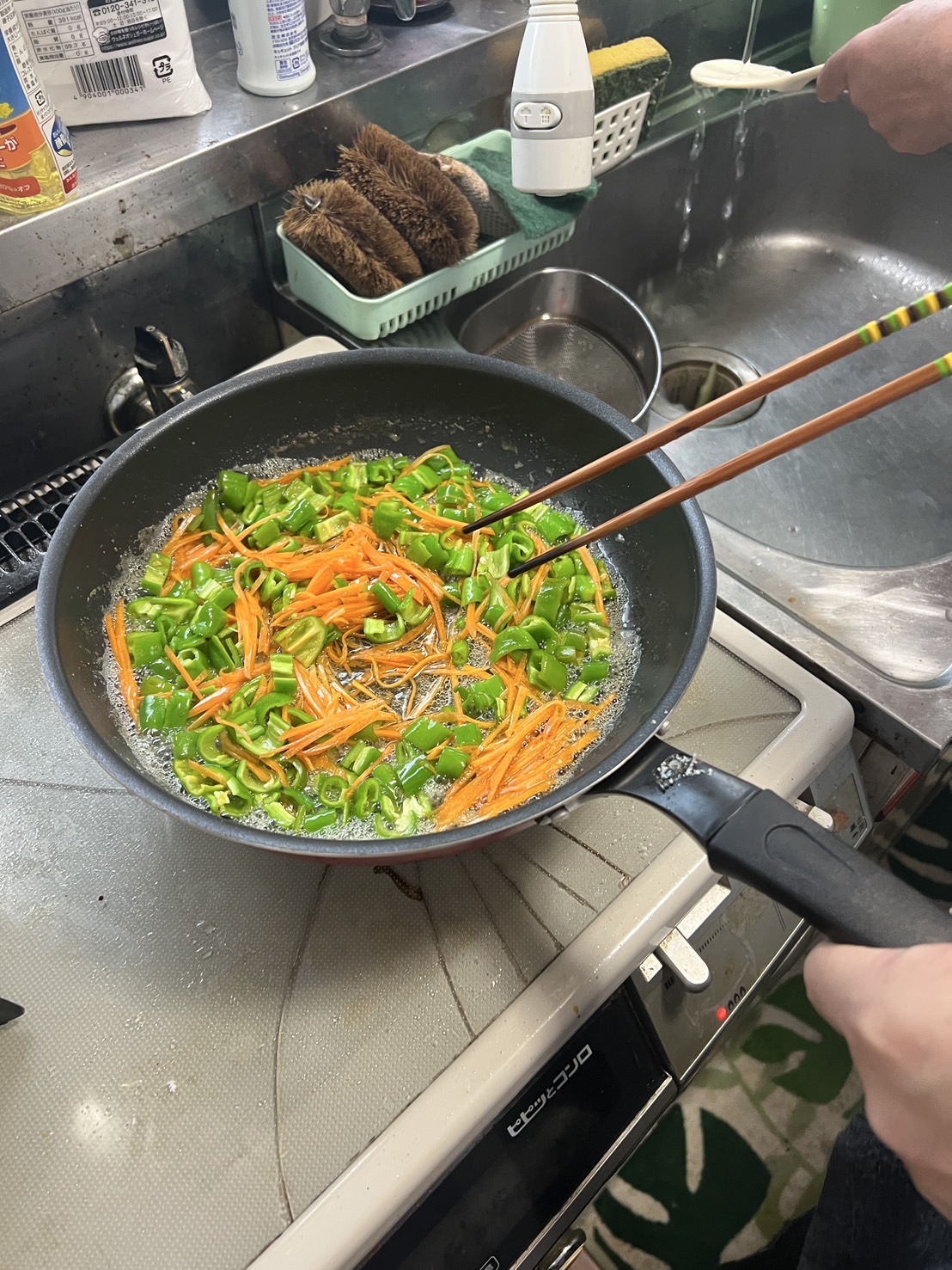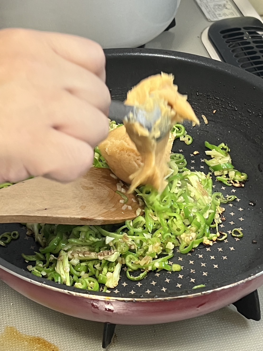 刻んで油で炒め、味噌と砂糖などを混ぜて万願寺とうがらし味噌も作りました。