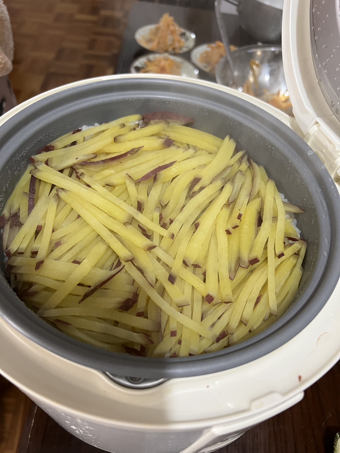 定番のさつまいもご飯も、細く切って炊き上がりに混ぜ込むことで