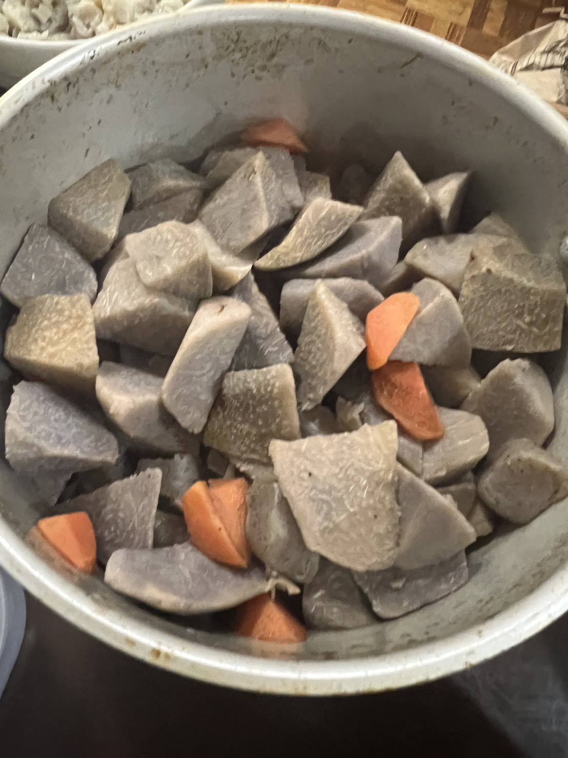 里芋の芋餅は柔らかく蒸して皮を剥き、