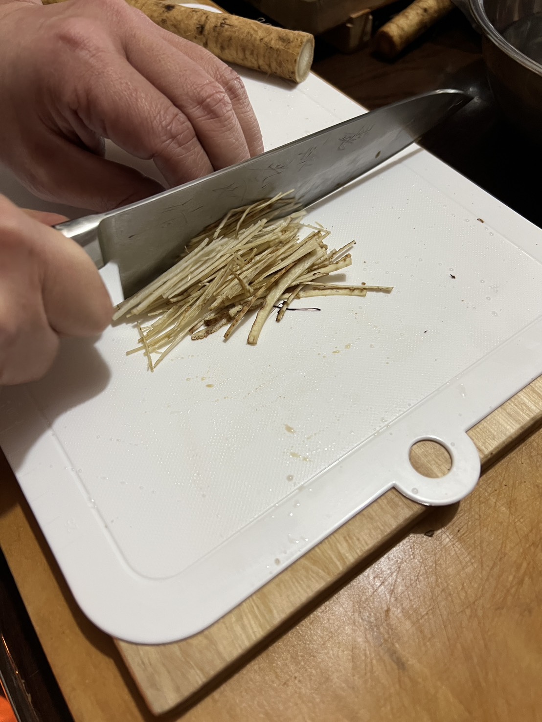 皆で黙々と刻んで、ちょっと太くなったものはかき揚げに、綺麗に切れたものはきんぴらなどになりました。